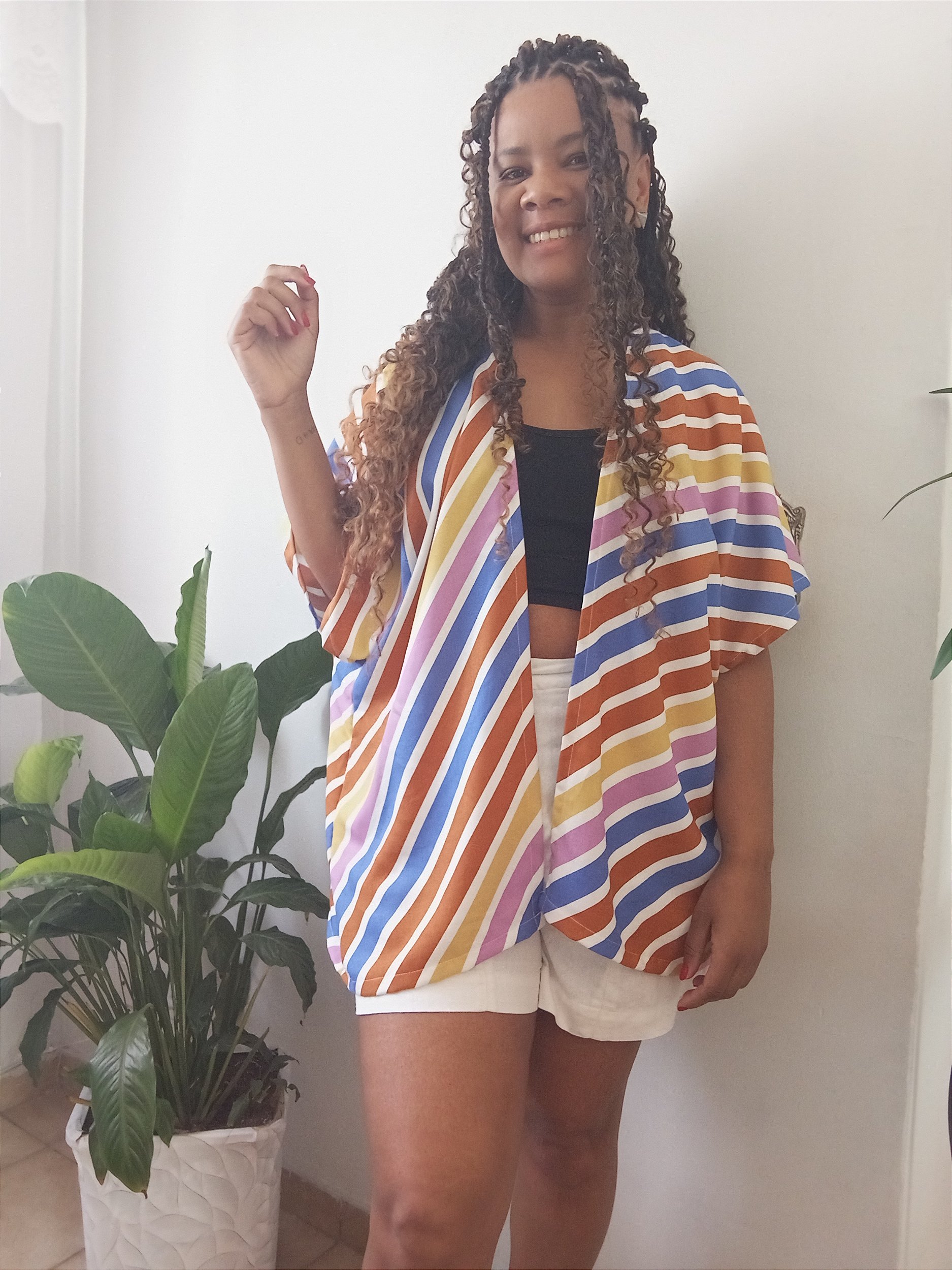 O Kimono permite variações em suas formas de usar, abuse nas formas de amarrar e use em várias composições . Medidas : O tamanho único e veste do 36 ao 48 Medidas :Largura (volta completa) 160cm, comprimento 70cm e volta da manga 55cm. Composição : 100% Viscose Sarjada